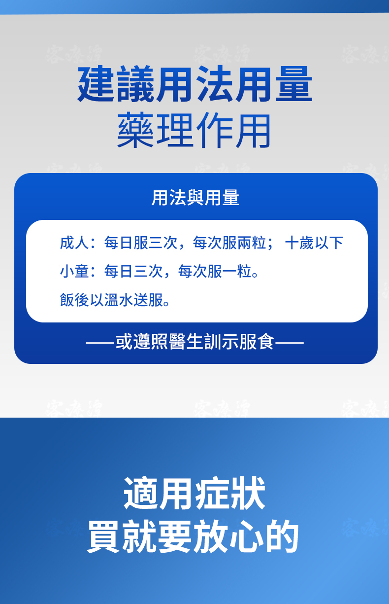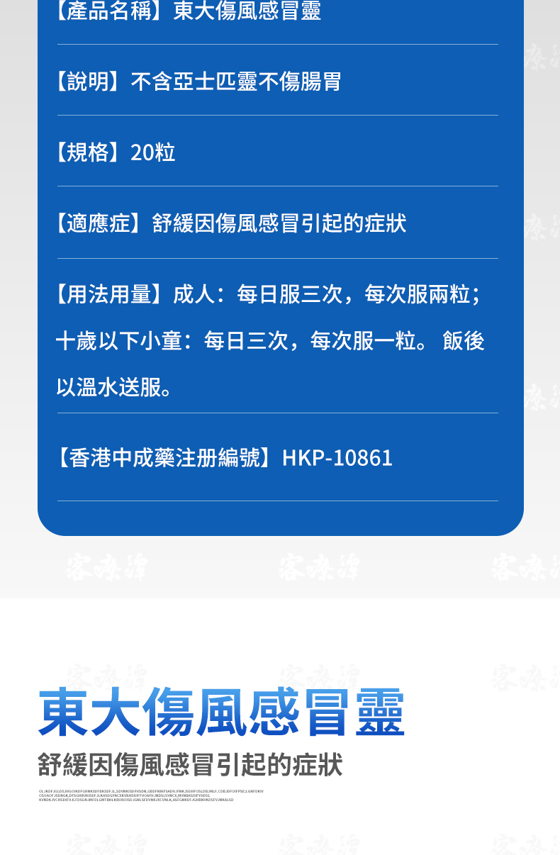Pure Chinese herbal medicine. The non-drowsy formula is suitable for drivers and mechanical operators.