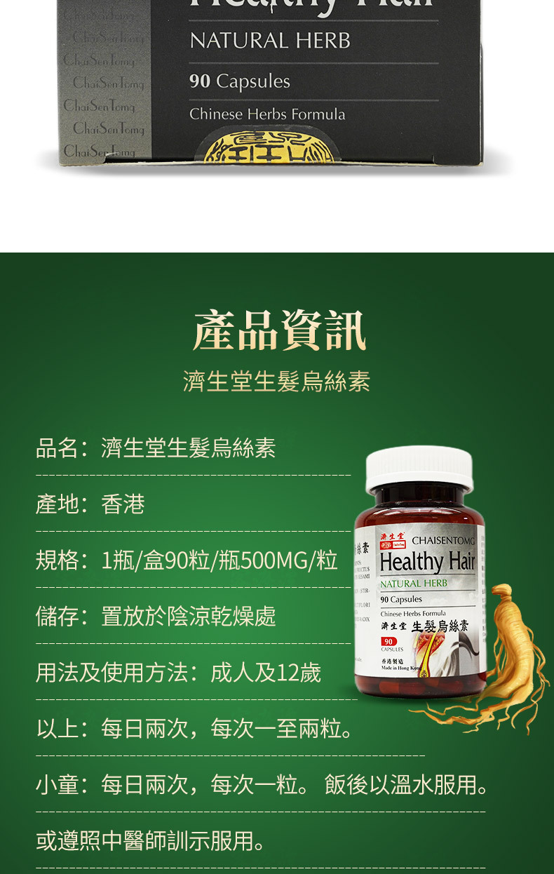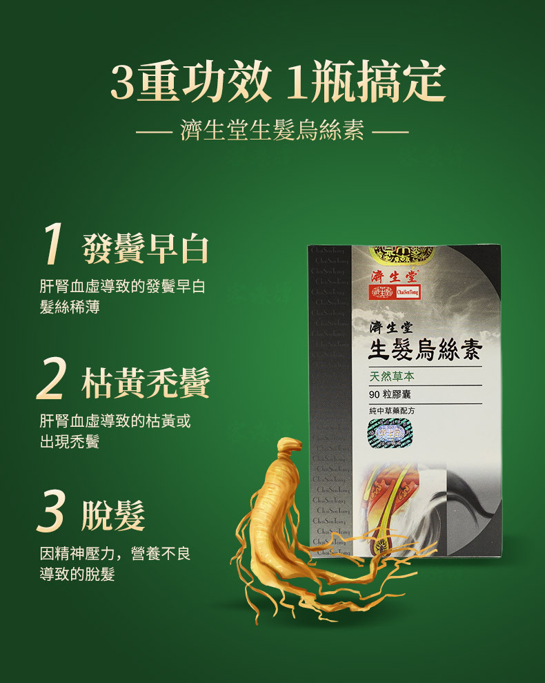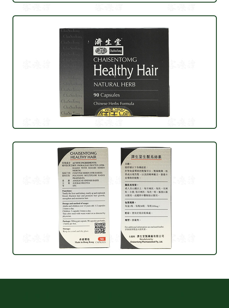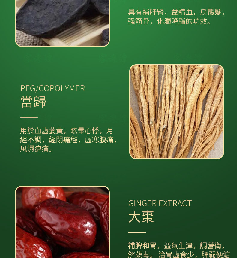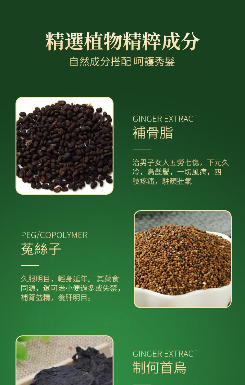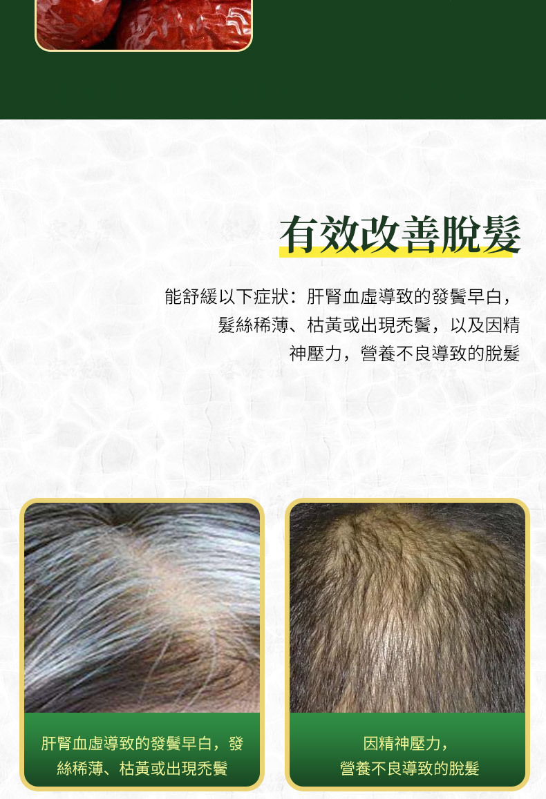 Functions: Tonify the liver and kidney, tonify qi and replenish blood, blacken hair and promote hair growth, strengthen and moisturize hair.